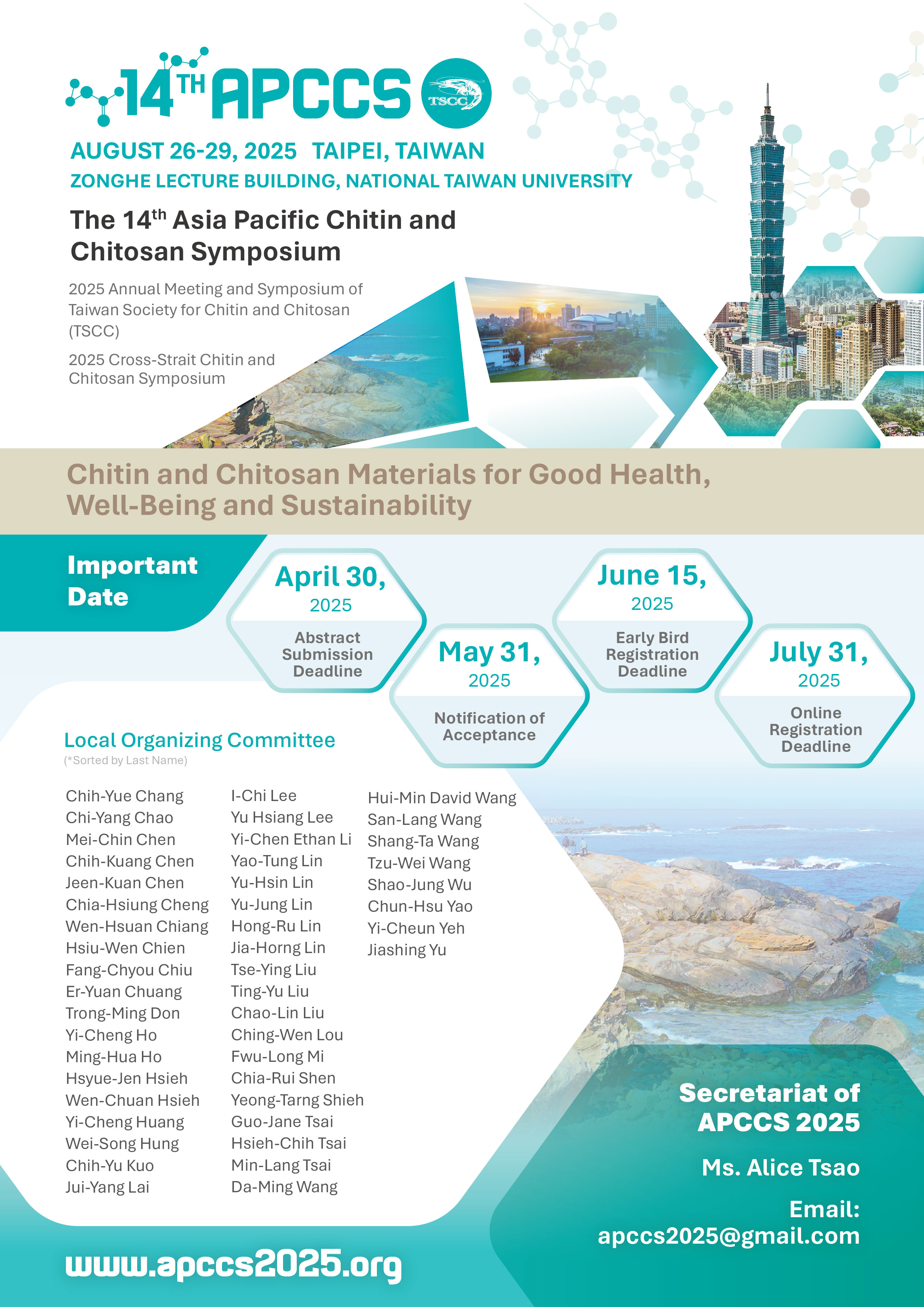 [十四屆亞太幾丁質幾丁聚醣會議 APCCS 2025] 將於2025/8/26-29舉辦,敬請踴躍投稿!
